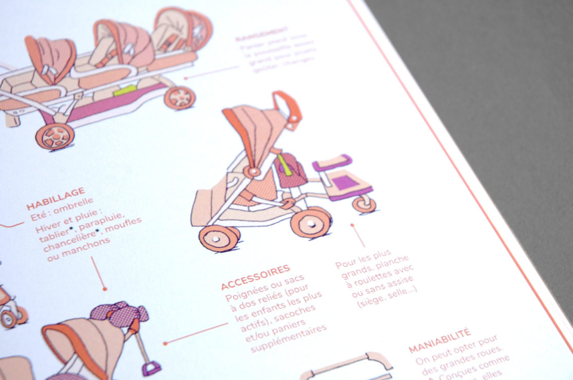 Avec l’illustratrice, nous avons retenu les notions de professionnalisme, d’accueil, et de joie. D’où le choix d’une gamme de couleurs vives, loin du cliché layette.